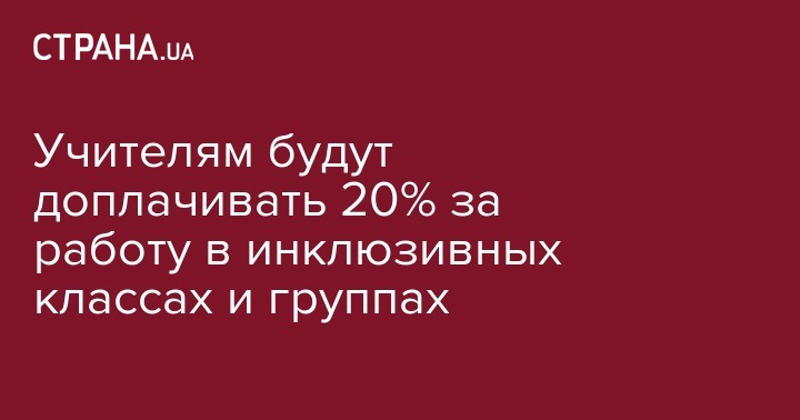 Кабинет министров установил 20% доплаты учителям и помощникам воспитателей за часы работы в инклюзивных классах в учреждениях дошкольного, общего среднего, внешкольного, профессионально-технического и высшего образования. Об этом сообщают "Украинские новости".