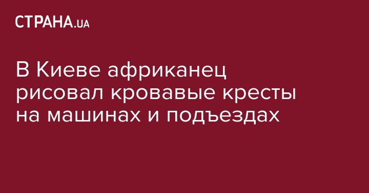 На улице Василия Липковского, 11 в Соломенском районе столицы темнокожий иностранец собственной кровью разрисовал крестами припаркованные во дворе машины и подъезд дома.