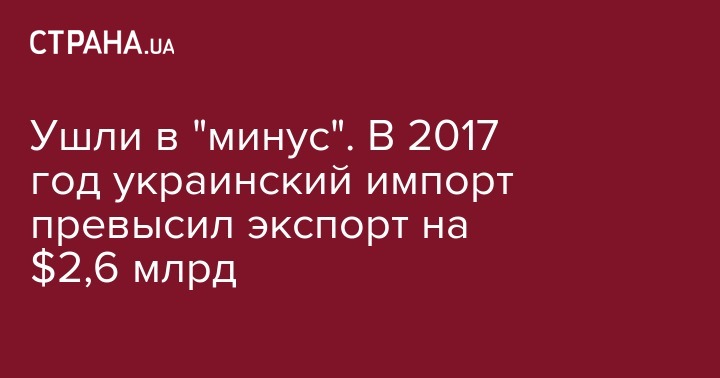 Также дефицит внешнеторгового баланса Украины в 2017 году превысил миллиард долларов.