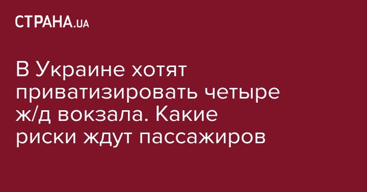 В Украине четыре железнодорожных вокзала могут стать частными. В Минэкономразвития планируют приватизацию вокзалов в Хусте, Славском, Яремче и Николаеве, пишут "Вести".