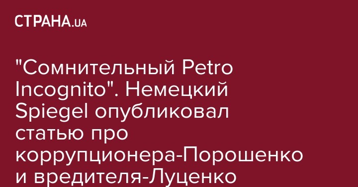 "Сомнительный Petro Incognito". Немецкий Spiegel опубликовал статью про коррупционера-Порошенко и вредителя-Луценко