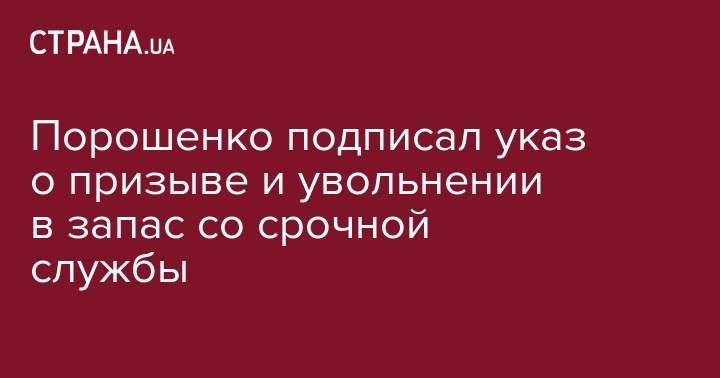 Президент Украины Петр Порошенко подписал указ об увольнении в запас военнослужащих срочной службы, а также о сроках проведения очередных призывов граждан Украины на срочную военную службу в 2018 году.