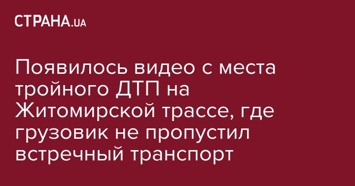 Появилось видео с места тройного ДТП на Житомирской трассе, где грузовик не пропустил встречный транспорт