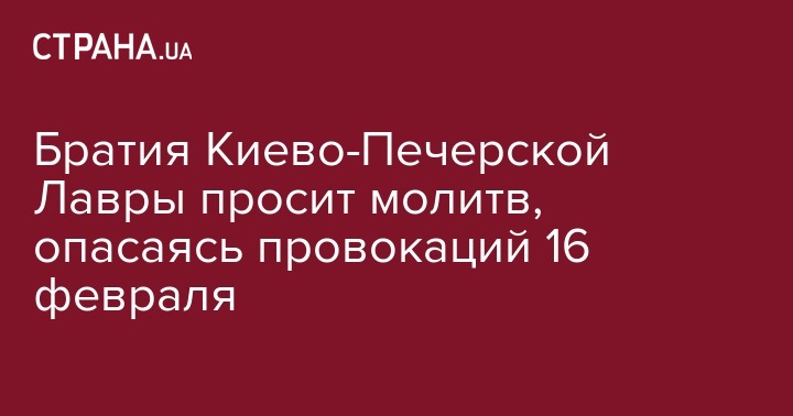 Братия Киево-Печерской Лавры просит молитв в связи с угрозой нападения на святыню 16 февраля. В соцсетях распространяется информация о подготовке националистами акций на территории монастыря.