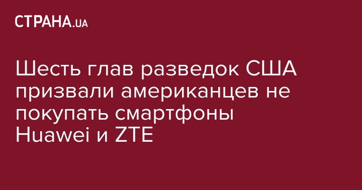 Главы шести крупнейших ведомств США призвали граждан США не пользоваться смартфонами Huawei и ZTE.