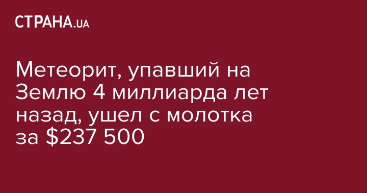 На аукционе за $237 500 продали метеорит, упавший в Аризоне 50 тыс. лет назад. Об этом сообщается на сайте аукционного дома Christie's.