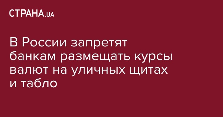 ЦБ предлагает внести поправки в свою инструкцию от 16 сентября 2010 г. Она устанавливает порядок операций с наличной валютой. Инструкцию предлагается дополнить пунктом о том, что уполномоченный банк или его филиал при операциях не могут размещать информацию о курсах валют за пределами помещения, в котором он расположен, "в том числе на щитах, стендах, перетяжках, электронных табло, монтируемых и располагаемых на внешних стенах помещения", а также на "крышах и иных конструктивных элементах здания, строения, сооружения".