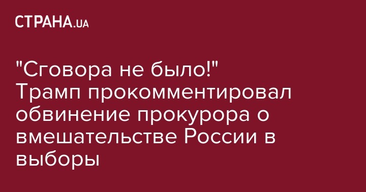 "Россия начала свою антиамериканскую кампанию в 2014 году, задолго до того, как я объявил, что буду баллотироваться на пост президента. На результаты выборов это не повлияло. В кампании Трампа не было ничего плохого - сговора не было!", - констатировал Трамп.