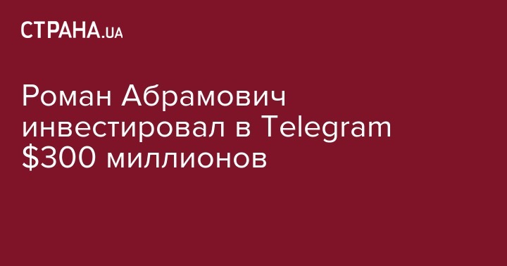 Роман Абрамович инвестировал в Telegram $300 миллионов