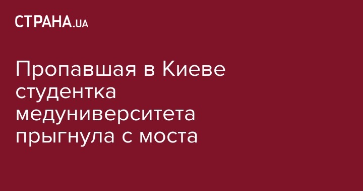 18-летняя студентка Национального медицинского университета имени Богомольца Мукаддас Насырлаева, которая пропала около трех недель назад, покончила с собой. Девушка прыгнула с моста Патона.