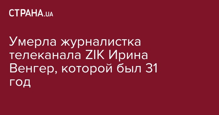 Умерла журналистка телеканала ZIK Ирина Венгер, которой был 31 год