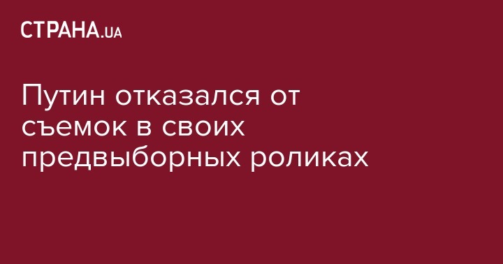 Российский президент Владимир Путин отказался от съемок и записи реплик для своих предвыборных видеороликов.