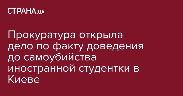 Прокуратура открыла дело по факту доведения до самоубийства иностранной студентки в Киеве
