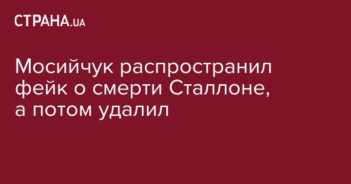 Нардеп от Радикальной партии Игорь Мосийчук выразил соболезнования в связи со смертью актера Сильвестра Сталлоне после появления фейковых сообщений в сети.
