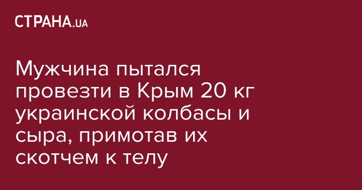 Мужчина пытался провезти в Крым 20 кг украинской колбасы и сыра, примотав их скотчем к телу