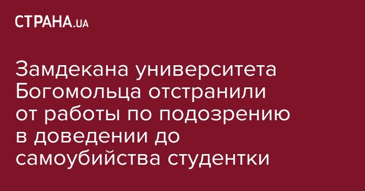 Замдекана университета Богомольца отстранили от работы по подозрению в доведении до самоубийства студентки