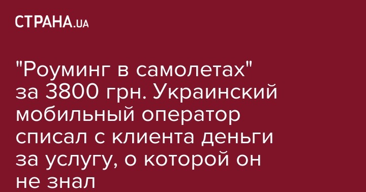 Со счета украинца оператор "Киевстар" списал 3800 грн за услугу "Роуминг в самолетах", которую пользователь, по его словам, не заказывал: к услуге смартфон подключился автоматически. Оператор так и не согласился вернуть списанные деньги.