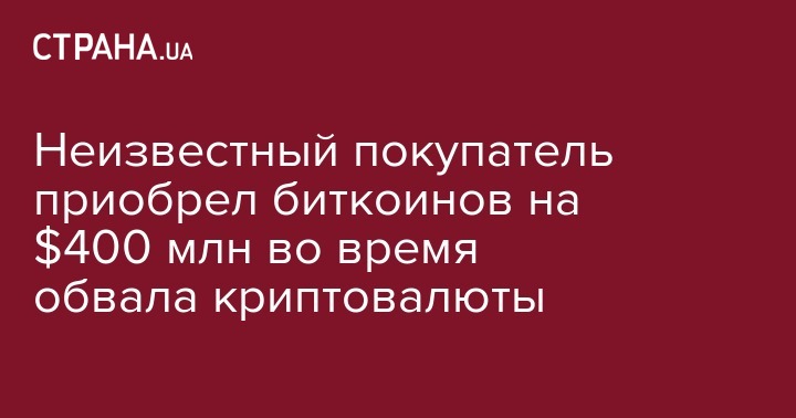 Неизвестный покупатель приобрел биткоинов на $400 млн во время обвала криптовалюты