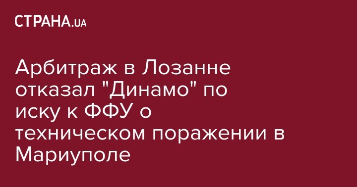 Спортивный арбитражный суд в Лозанне (CAS) полностью отказал в удовлетворении жалобы ФК "Динамо" (Киев) на решение органов футбольного правосудия Украины о техпоражении за неявку на матч чемпионата Украины в Мариуполь 27 августа 2017 года.