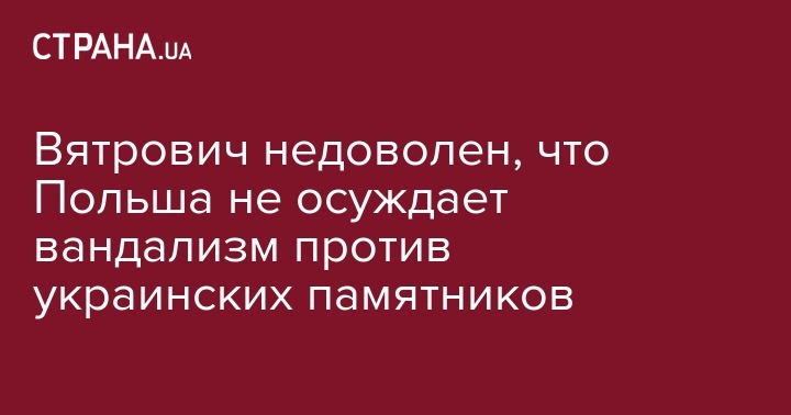 Вятрович недоволен, что Польша не осуждает вандализм против украинских памятников