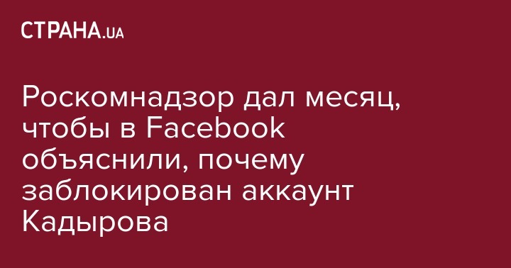 Замглавы Роскомнадзора Вадим Субботин заявил, что ведомство еще раз подняло вопрос о причинах блокировки аккаунтов главы Чечни Рамзана Кадырова в Facebook и Instagram.