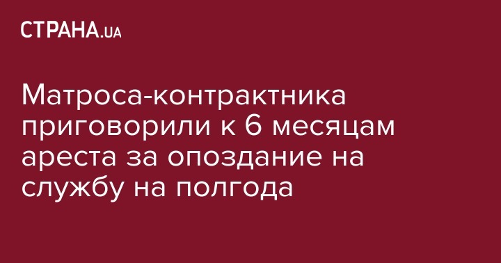 Белгород-Днестровский горрайонный суд Одесской области приговорил к 6 месяцам ареста матроса-контрактника, который полгода игнорировал уставные требования. Военный прибыл на службу с опозданием почти на полгода. Об этом написал пресс-секретарь ГПУ Андрей Лысенко на своей странице в Facebook.