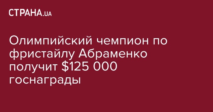 Олимпийскому чемпиону по фристайлу Александру Абраменко выплатят государственную награду в размере 125 000 долларов в гривневом эквиваленте. Об этом сообщил министр молодежи и спорта Игорь Жданов.