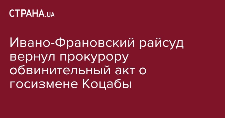 "Сегодня, 20 февраля, Долинский районный суд Ивано-Франковской области вернул прокурору прокуратуры Ивано-Франковской области обвинительный акт в уголовном производстве обвинения Коцабы Руслана Петровича в совершении уголовных правонарушений, предусмотренных ч.1 ст. 111, ч1 ст. 114-1 УК Украины вместе с другими материалами уголовного производства", - говорится в сообщении райсуда.