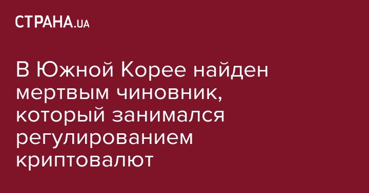 В Южной Корее найден мертвым чиновник, который занимался регулированием криптовалют