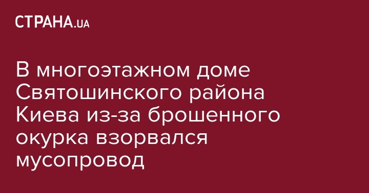 В многоэтажном доме Святошинского района Киева из-за брошенного окурка взорвался мусопровод