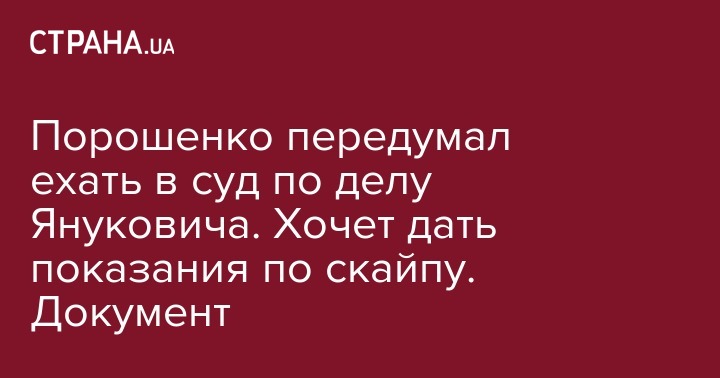 Порошенко передумал ехать в суд по делу Януковича. Хочет дать показания по скайпу. Документ