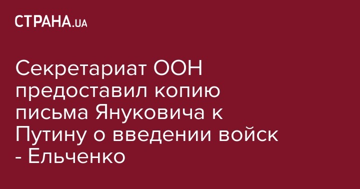 Секретариат ООН предоставил копию письма Януковича к Путину о введении войск - Ельченко