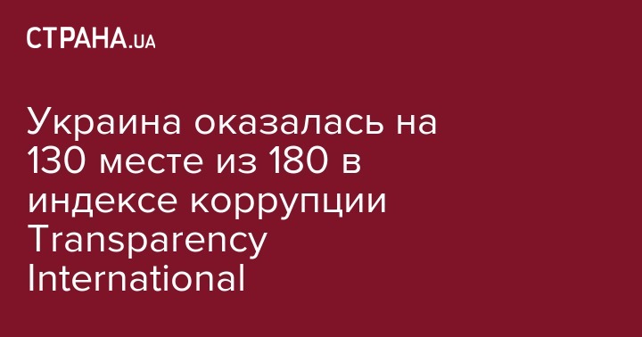 Украина оказалась на 130 месте из 180 в индексе коррупции Transparency International