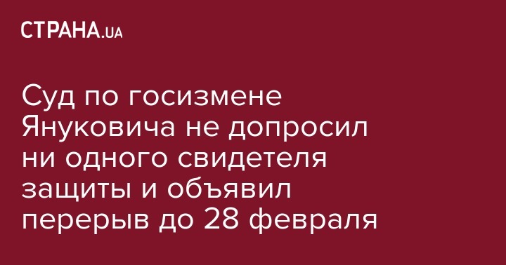 В рассмотрении дела о госизмене экс-президента Виктора Януковича объявлен перерыв до 28 февраля.