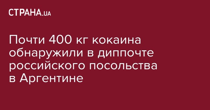 В дипломатической почте посольства России в Аргентине было обнаружено почти 400 кг кокаина, передает местное издание Clarin.