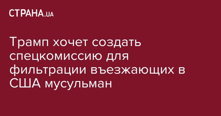 "Без пяти минут" официальный кандидат в президенты США от Республиканской партии Дональд Трамп в интервью американскому Fox News объявил о планах, в случае избрания на должность, создать комиссию для изучения иммиграционного законодательства и его инициативы по ограничению допуска мусульман в США.