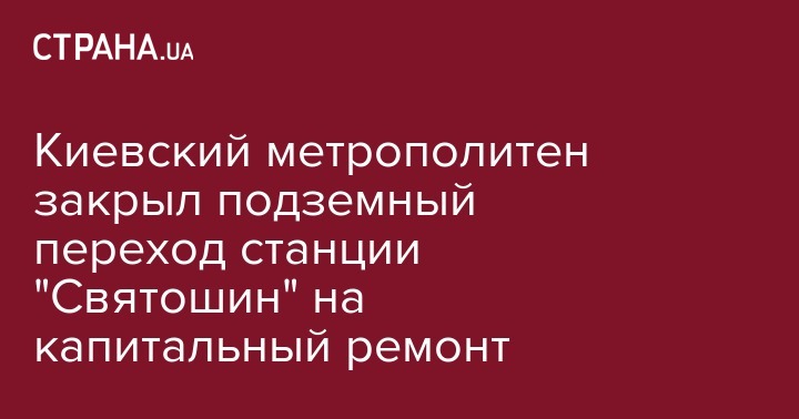 Коммунальное предприятие "Киевский метрополитен" закрыл подземный переход на станции "Святошин" из-за ремонта с 24 февраля до октября 2018 года. Об этом сообщает пресс-служба Киевского метрополитена.