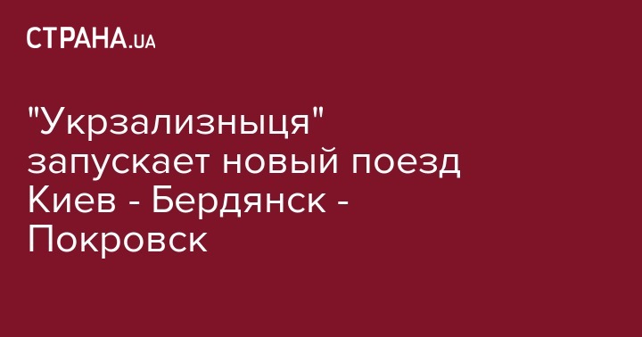 "Укрзализныця" запускает новый поезд Киев - Бердянск - Покровск