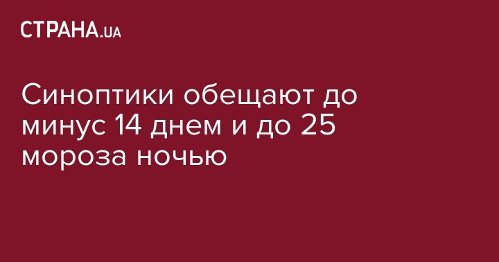 Синоптики обещают до минус 14 днем и до 25 мороза ночью