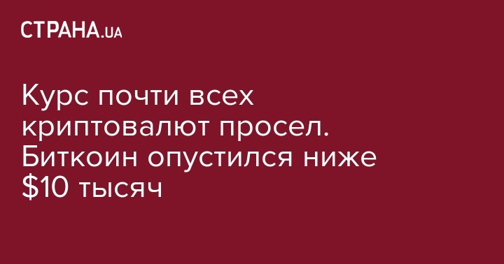 Курс почти всех криптовалют просел. Биткоин опустился ниже $10 тысяч