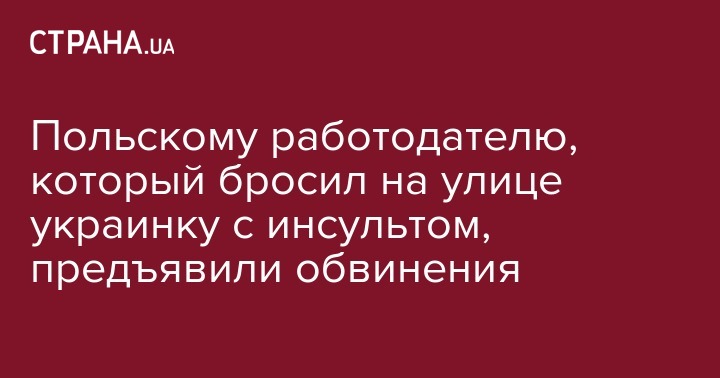 Польскому работодателю, который отвез на остановку и бросил там работницу из Украины, у которой произошел инсульт, предъявили обвинение в нелегальном трудоустройстве иностранцев.