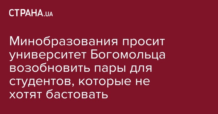 Министерство образования и науки Украины призвало руководство Национального медицинского университета имени Богомольца организовать пары для тех студентов, которые не хотят участвовать в университетской забастовке и не применять админресурс. Об этом сообщается на сайте МОН.
