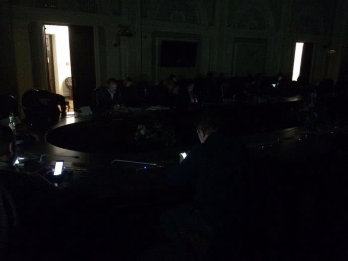 Какие именно вопросы рассматривались на заседании фракции журналист не уточнил. После отключения света депутаты сразу включили телефоны, которые немного подсветили помещение.