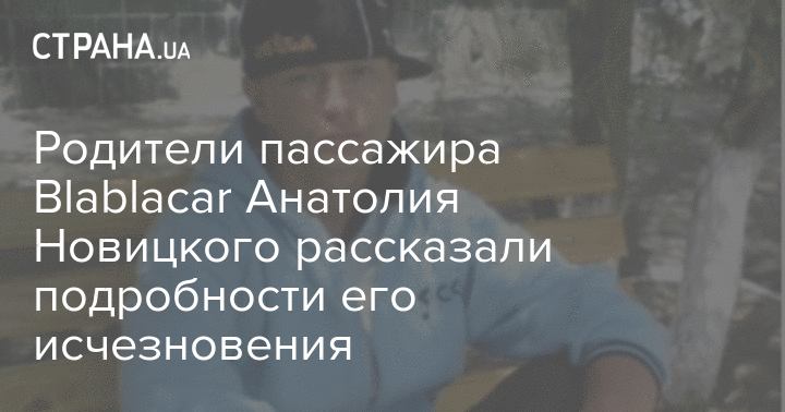 Тем временем, в Blablacar "Стране" сообщили, что не имеют отношения к пропаже парня. В сервисе нам заявили, что поездка, после которой пропал Анатолий Новицкий, закончилась успешно и сервис не причастен к пропаже.
