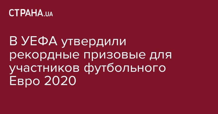 По решению Исполнительного комитета УЕФА - на ЕВРО-2020 будут рекордные призовые для участников. Выплаты вырастут на 23% и составят 371 миллион евро. Гранты пойдут на развитие футбола в Европе.