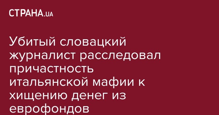 Убитый словацкий журналист расследовал причастность итальянской мафии к хищению денег из еврофондов