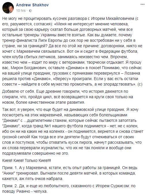 Президент "Динамо" Игорь Суркис опроверг переговоры с испанским специалистом Раулем Рианчо, работающим нынче в тренерском штабе национальной сборной Украины. Об этом на своей странице в Facebook написал журналист Андрей Шахов.