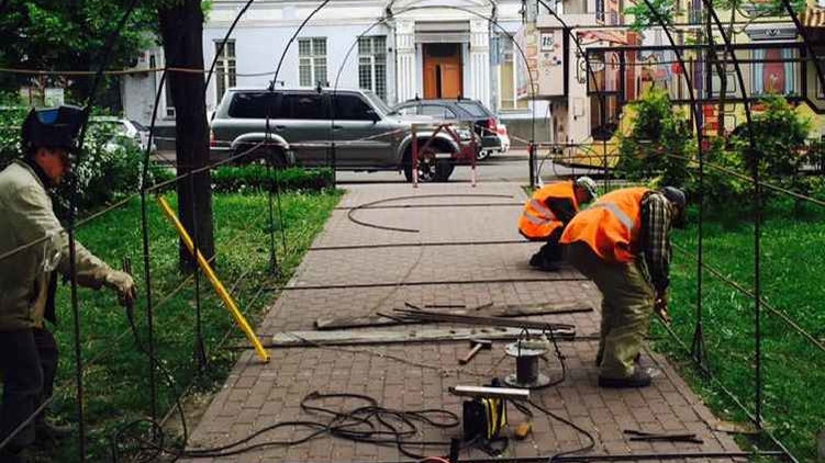 Зеленая аллея для влюбленных будет расположена недалеко от станции метро "Контрактовая площадь".  "Монтируем тоннель любви в сквере на Сагайдачного! Сначала конструкция, позднее озеленение! Когда заплетется, будет нам красиво", - написали сотрудники коммунального предприятия.
