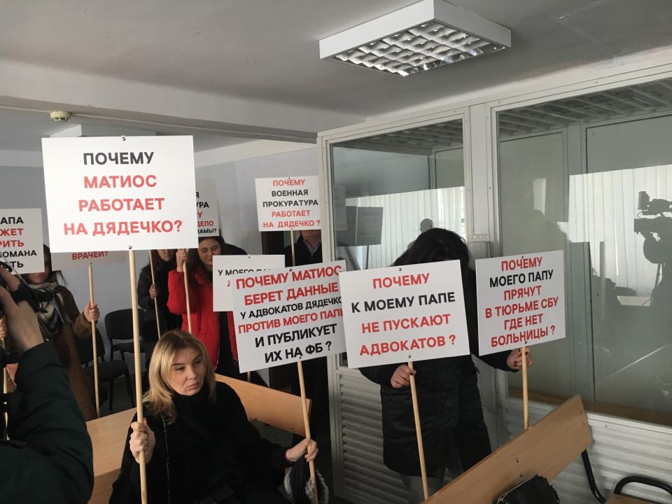На заседание пришли родственники и близкие Шепелева, они развернули плакаты.