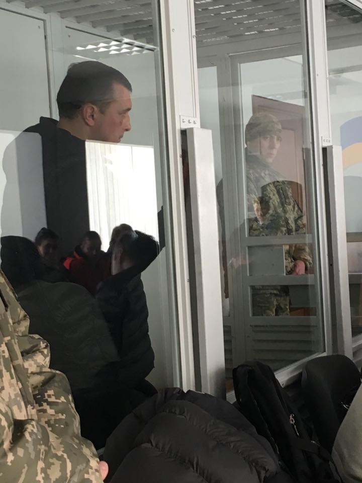 Шепелева доставили в суд в бронежилете, после захода в бокс он его снял и положил на лавку. Синяки и кровоподтеки на его лице почти сошли.